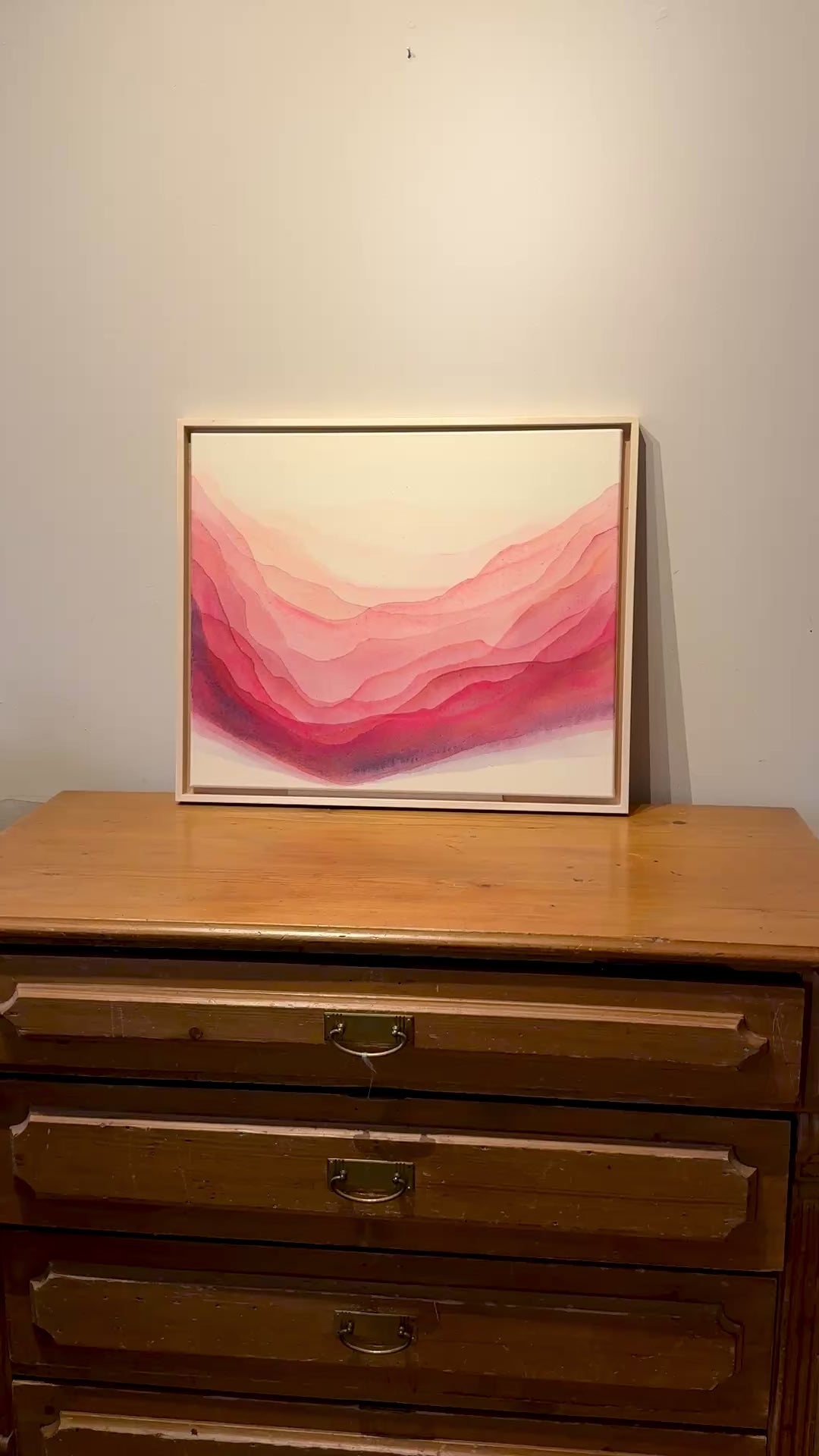 „Valley of Light“ zeigt das leise Aufleuchten von Farbe und Licht – wie ein Tal im Morgennebel, in warme Rottöne, Rosé und Pflaume getaucht. Die transparenten Farbschichten fließen sanft ineinander, wie Luft und Erde im Wechselspiel des Lichts, und schaffen eine ruhige Tiefe voller Wärme und Klarheit.